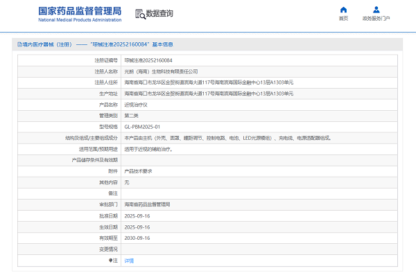 选购时务必要求商家出示医疗器械注册证,可登录国家药监局官网查询真伪,确认注册证编号、产品名称、适用范围等信息与实物一致。如贝贝乐PBM-LED近视治疗仪(注册证编号:琼械注准20252160084),作为新规后全国首个获批的LED红光二类医疗器械,就是合规产品的标杆。