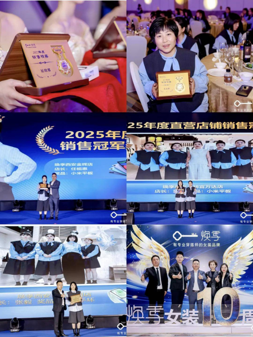 年度颁奖盛典将现场气氛推向高潮。本次年会重磅颁发巅峰门店、增长先锋、卓越多店合作伙伴、十年功勋客户、销售冠军、风雨同舟奖等十余项荣誉,全面表彰为品牌发展作出突出贡献的团队与个人,生动彰显焕季家人的坚守与担当。颁奖环节,十年客户王超、多店客户贺军与陈波(陈波亦是十年员工),以及门店员工董雪先后登台,分享与焕季相伴同行的成长故事,传递同心筑梦的力量,引发全场共鸣。