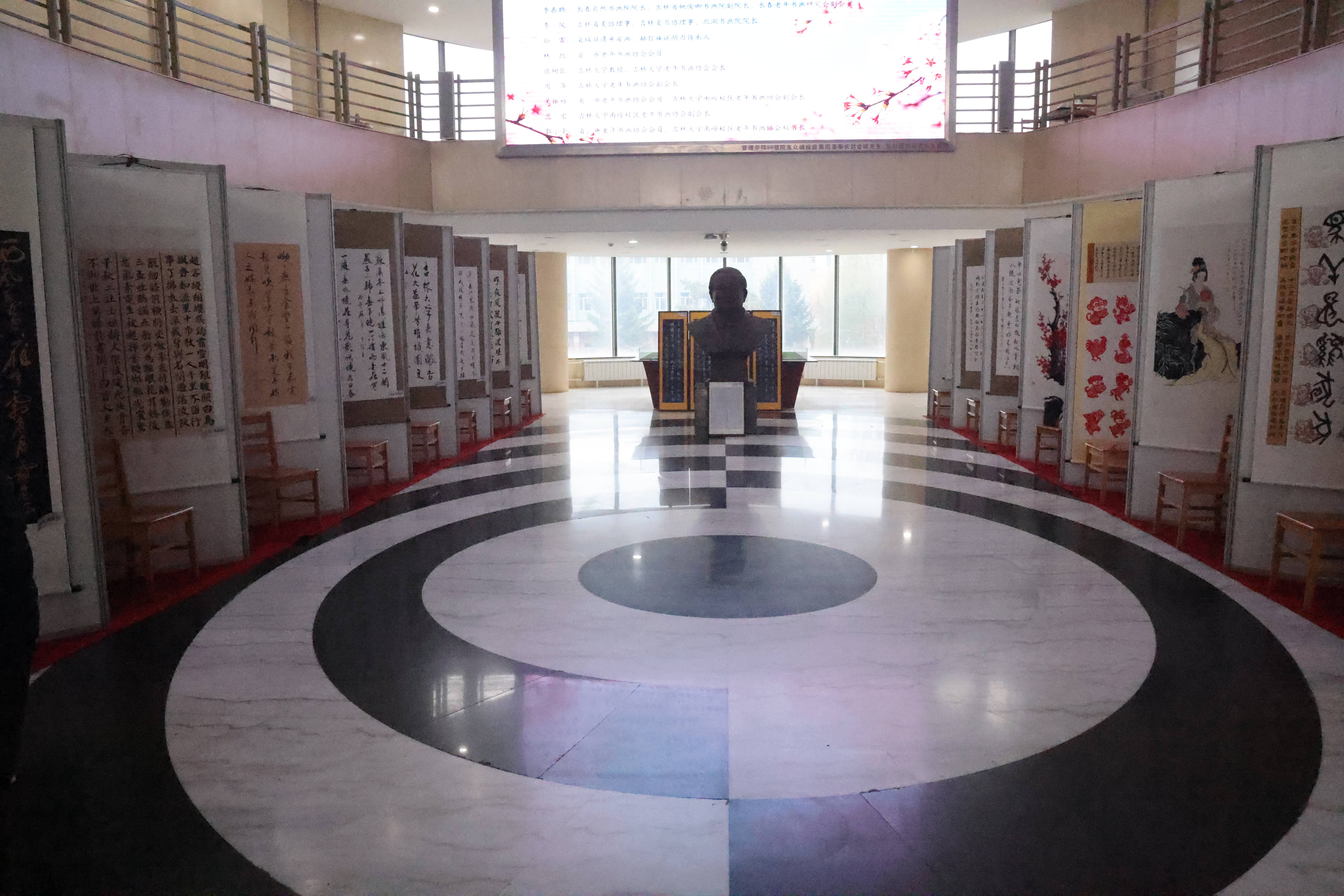 春风拂面,杏花满枝。4月17日,“银龄绘春·杏花寄情”吉林大学南岭校区老年书画展在逸夫教学楼大厅举行。