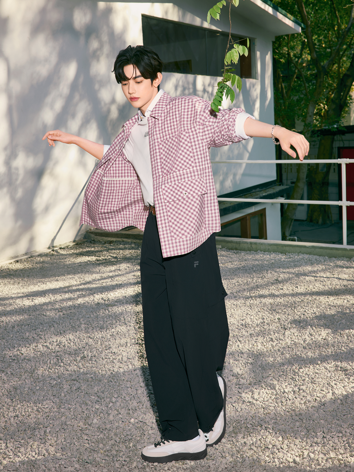 FILA FUSION潮流品牌大使章昊的造型则凸显了男款的复古街头质感与混搭可塑性。他身着“出格衬衫”,凭借独特的色彩与宽松版型,轻松营造出热烈的氛围感。格纹元素在帕斯蒂尔低饱和粉色的加持下被注入全新潮流基因,这种柔和的高级粉,如同为造型加持了一层“爱豆滤镜”,能有效提亮肤色,打破了粉色固有的性别界限,证明男生驾驭起来同样出众。挺括的廓形在舞动时能随着街拍律动,亦能呈现不同的飘逸感。多功能口袋设计使其可在外套与内搭间自由切换,丰富实用性。无论是周末与友人出游聚会、在舞蹈房中练舞、甚至是踏上音乐节的舞台,「出格衬衫」都能让他保持清爽有型的出“格”状态。内搭COOLMAX科技的清爽白Tee,卓越的吸湿速干与接触凉感科技,确保日常穿着舒爽体感。下装宽松蕉形裤采用CORDURA面料,出色耐磨性与四面弹力,应对各种大幅度动作,独特的弯刀剪裁在经典裤型中注入了现代流动感。
