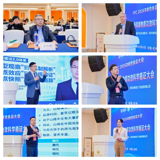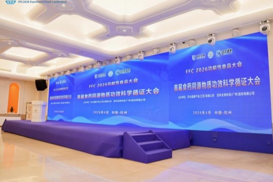 4月24日,作为FFC 2026功能性食品大会的专题环节,首届食药同源物质功效科学循证大会在杭州圆满落幕。本次大会由百环生物科技(广州)股份有限公司与药大健康产业(江苏)有限公司联合主办,以“科学循证赋能食药同源产业高质量发展”为主题,汇聚产学研各界权威力量,为行业规范化、科学化发展搭建了深度交流平台。