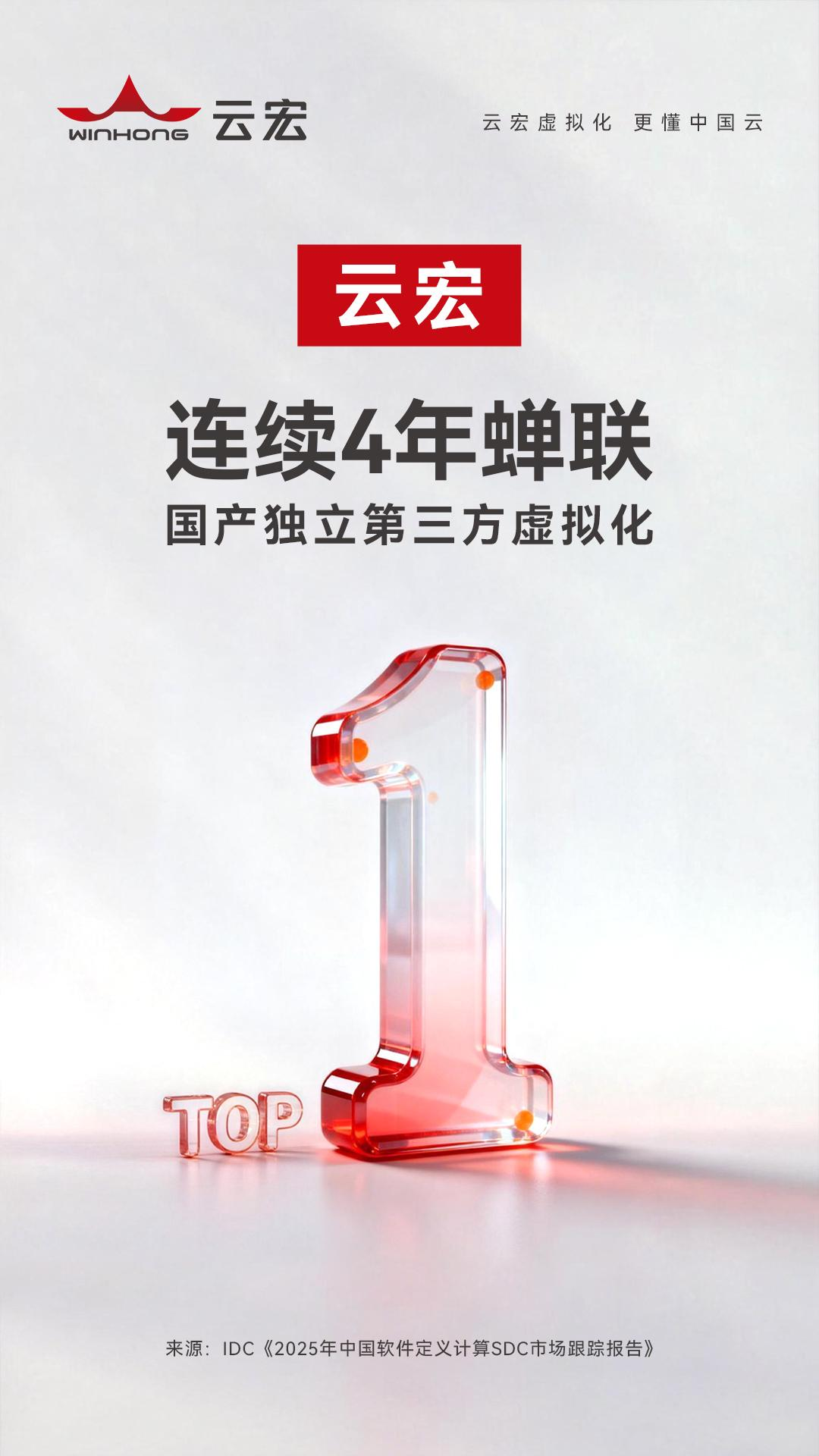 IDC报告:云宏连续4年蝉联国产独立第三方虚拟化TOP 1