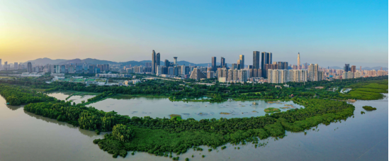 红树林边,深圳湾畔。绿意盎然的红树林湿地为鸟类、鱼类、哺乳类等81科253种野生动物提供了栖息地,深圳已成为连接全球候鸟迁徙通道的关键节点。