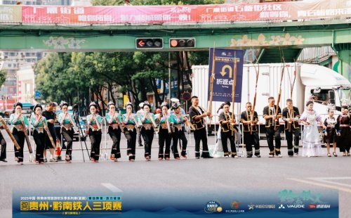 此外,赛事期间,沿线设置的多个"民族风情加油站"成为亮点,身着布依族、苗族服饰的志愿者走上街头,用芦笙舞,铜鼓、木鼓、长号演奏的方式为参赛选手加油,让参赛选手在激烈比拼中感受黔南人民的热情。
