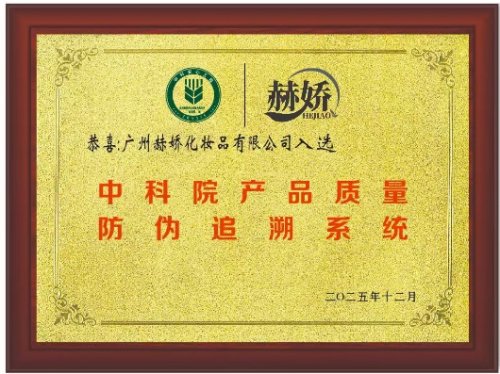 赫娇隶属于广州赫娇化妆品有限公司,依托自有现代化生产基地与严格品控体系,已与中国人民保险集团签约产品责任险,取得深圳市华科科技有限公司出具的功效评价报告,还曾登录《青春中国行》栏目,获得行业专业人士的认可与推荐。同时,赫娇品牌由中国抗衰老促进会健康美容分会副会长王琳女士和杨冰心女士担任特邀技术顾问,入选《中科院产品质量防伪追溯系统》,为肌肤的安全修护提供了可靠保障。
