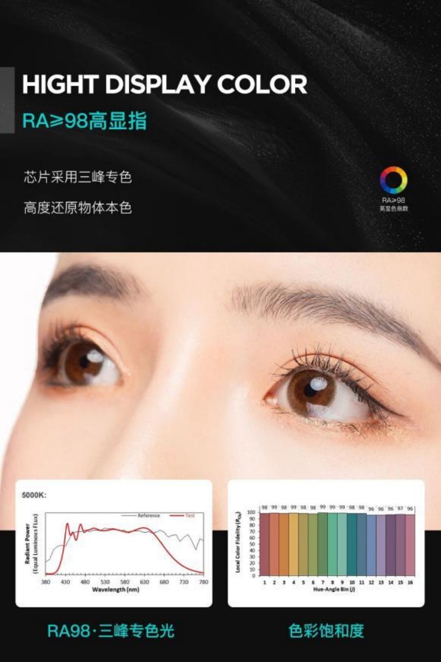 创新研发三峰专色光与健康光——三峰照明联合中科院张洪杰院士团队的项目研究成果,开发一种能有效抑制眼轴过度增长,预防眼轴性近视的健康光源。模拟自然光节律与亚洲人视觉特征,打造“护眼、舒适、节能”的健康照明方案,让专业级健康光走进普通家庭;