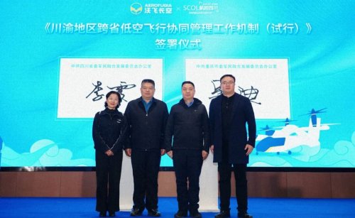 现场,川渝两地签署的《川渝地区跨省低空飞行协同管理工作机制(试行)》,将探索构建“审批一体化、管理协同化、空域网格化、服务标准化”的川渝低空空域协同运行新格局,实现跨省低空飞行审批便捷、安全高效。