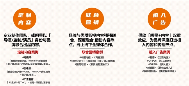 作为深耕娱乐营销领域的标杆企业,新吉胜传媒的核心竞争力源于近百位独家合作艺人资源构建的坚实壁垒,更在于其覆盖全产业链的多元化服务能力。从艺人代理签约、艺统执行等基础服务,到影视剧合作授权、商业直播、种草软植等热门业务,再到 TVC 及短视频制作、微综艺与微电影联创传播等定制化内容,新吉胜传媒构建了 “代言 + 内容 + 投资” 的三维业务体系。无论是品牌代言、轻代言、轻授权等灵活合作模式,还是定制内容、联合营销、植入广告等深度合作形式,亦或是影视综艺投资等前瞻布局,都能精准匹配不同品牌在不同发展阶段的营销需求。