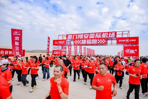 在翔安机场跑道之上,专业马拉松运动员带领热身准备后,500名跑者应声出发,在跑道上形成一道流动的科技风景线。鸿星尔克实业董事长吴荣照也换上跑鞋,与各位跑者一同踏上跑道,亲身感受竞速的魅力。这场航空跑道上的体验跑,既是对芷境 4 性能的集中检验,更以仪式感呼应品牌在专业运动领域持续突破、不断启航的姿态。