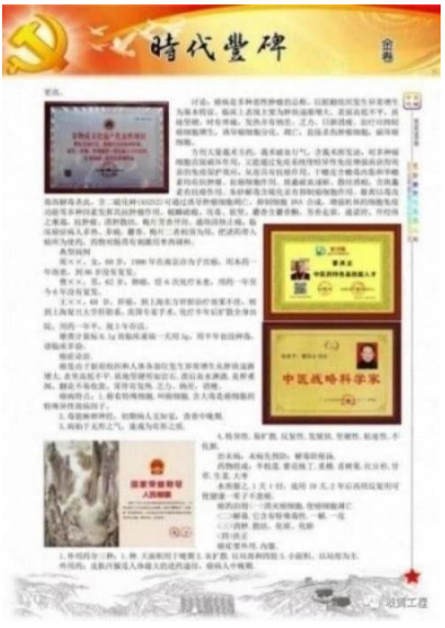 1993撰写门用法泡疗法治乙肝临床观察,北京首届光明杯,中医药优秀论文表彰大会,经专家评审为优秀论文和景太兰光明杯,1993年被河南省张仲景医药研究院授于高级研究员,1996年写糖尿病论治,四届桂林学术会议录用受到北京专家好评,取得国家级论文证书,2008由卫生局调卫生服务中心工作,2013年被宿州记者报道这里永远里春天,2022年被国医文化传承委员评选为国医专家委员,2022年7月被聘俄罗斯传统东方医学专家委员,被中科院聘为“客座教授”