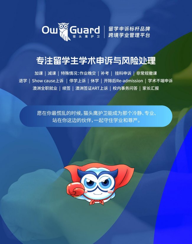 作为一家成立于2017年的专业化服务品牌,猫头鹰护卫长期聚焦澳洲、英国等成熟法治教育体系下的申诉、听证与行政裁量类案件,尤其关注学术不端指控、停学与劝退申诉、Show Cause 说明及校内外复审等复杂类型案件。