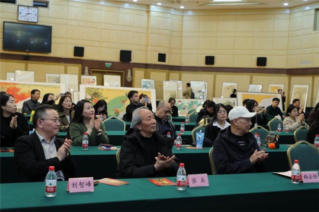 原文旅部非遗司副司长、国家画院党组副书记纪委书记张兵,北京市文联原副主席、第八届中国美术家协会理事、第五、六、七届中国书法家协会理事、首届中国文艺评论家协会理事彭利铭,中央国家机关美术家协会主席、中央国家机关书法家协会副主席王阔海,著名爱国诗人、红色文旅国家大课堂总策划、印尼中国经济合作中心顾问胡雨泽,文化部专家委员会专家、电视台鉴宝专家孙文起,亚圣孟子第七十三代宗孙、国务院新闻办办公室原主任张大千徒孙、大风堂第三代掌门人孟庆利,高新技术企业协会监事会会长朱云刚,山西省长治市中医协会会长李樊荣,北京众安中医院长刘智峰,中医疑难病研究会秘书长史洁,中国民间文艺家协会会员中国书法研究院研究员、中国民族画院书法院副院长、世界中华文化艺术基金会艺术总监、美国东西方艺术文化协会副会长苏东河,香港著名企业家、韩必恒老师友人王俊卿,以及此次展览的主角、中国工笔画非遗传承人、著名画家 韩必恒,和媒体界、收藏界、书画艺术爱好者等社会各界两百多人出席了活动,并共同见证了这一盛大的艺术活动。