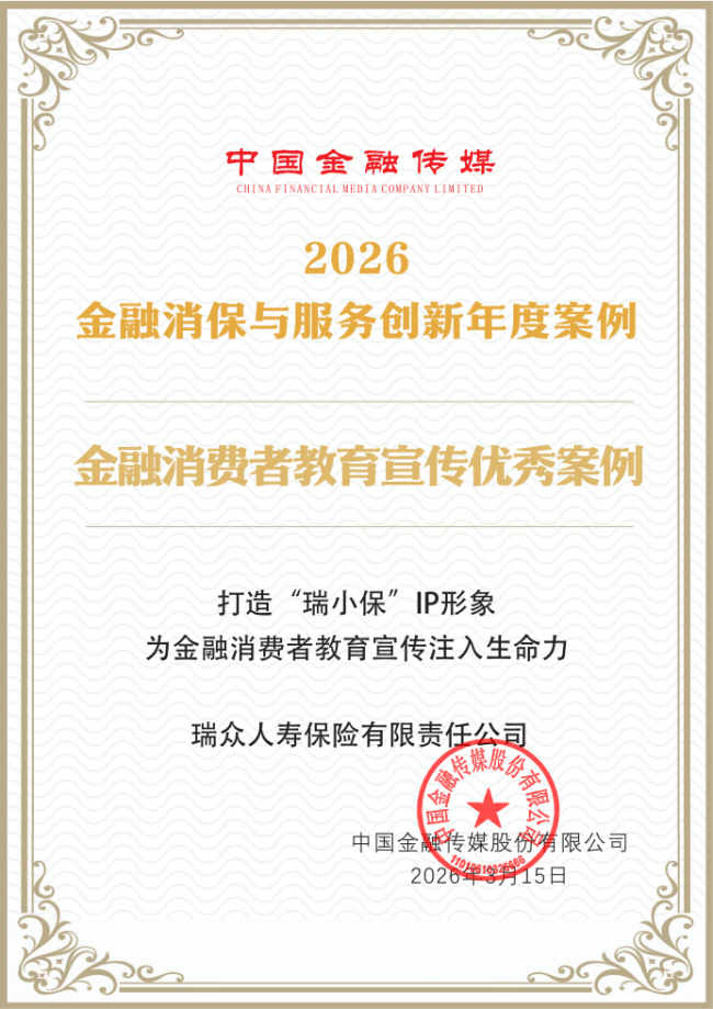 在“3·15”国际消费者权益日期间,中国金融传媒正式发布“2026金融消保与服务创新年度案例”,瑞众人寿保险有限责任公司(以下简称“瑞众保险”)凭借“打造‘瑞小保’IP形象为金融消费者教育宣传注入生命力”的创新实践,成功获评“金融消费者教育宣传优秀案例”。这一荣誉的获得,标志着瑞众保险在探索金融教育宣传品牌化、人格化、常态化路径上的努力,获得了行业的高度认可。