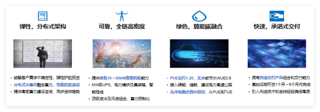 • 极致节能:通过提高回风温度、拉大温差、延长自然冷源时长、背板布置等措施,使得项目年均PUE<1.2